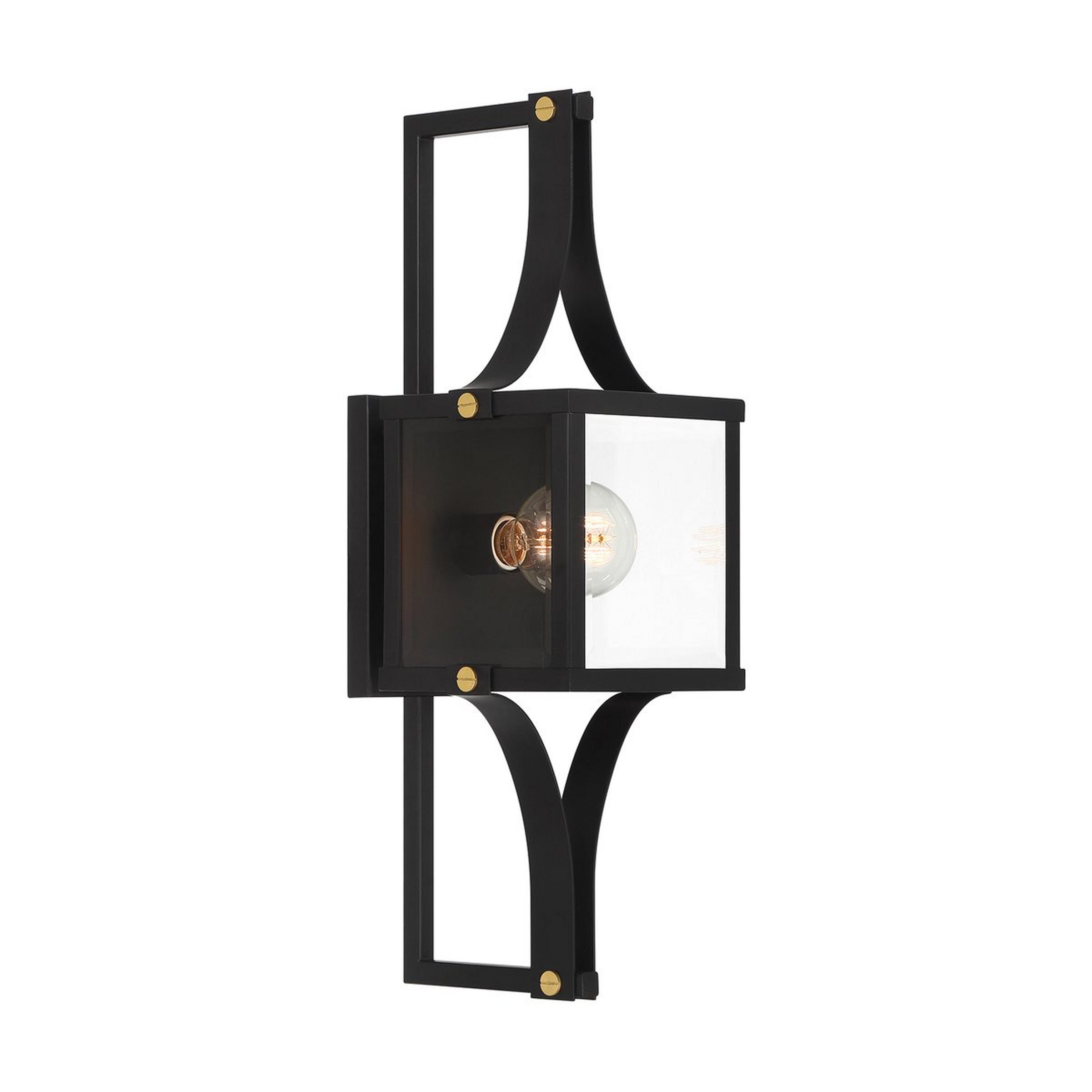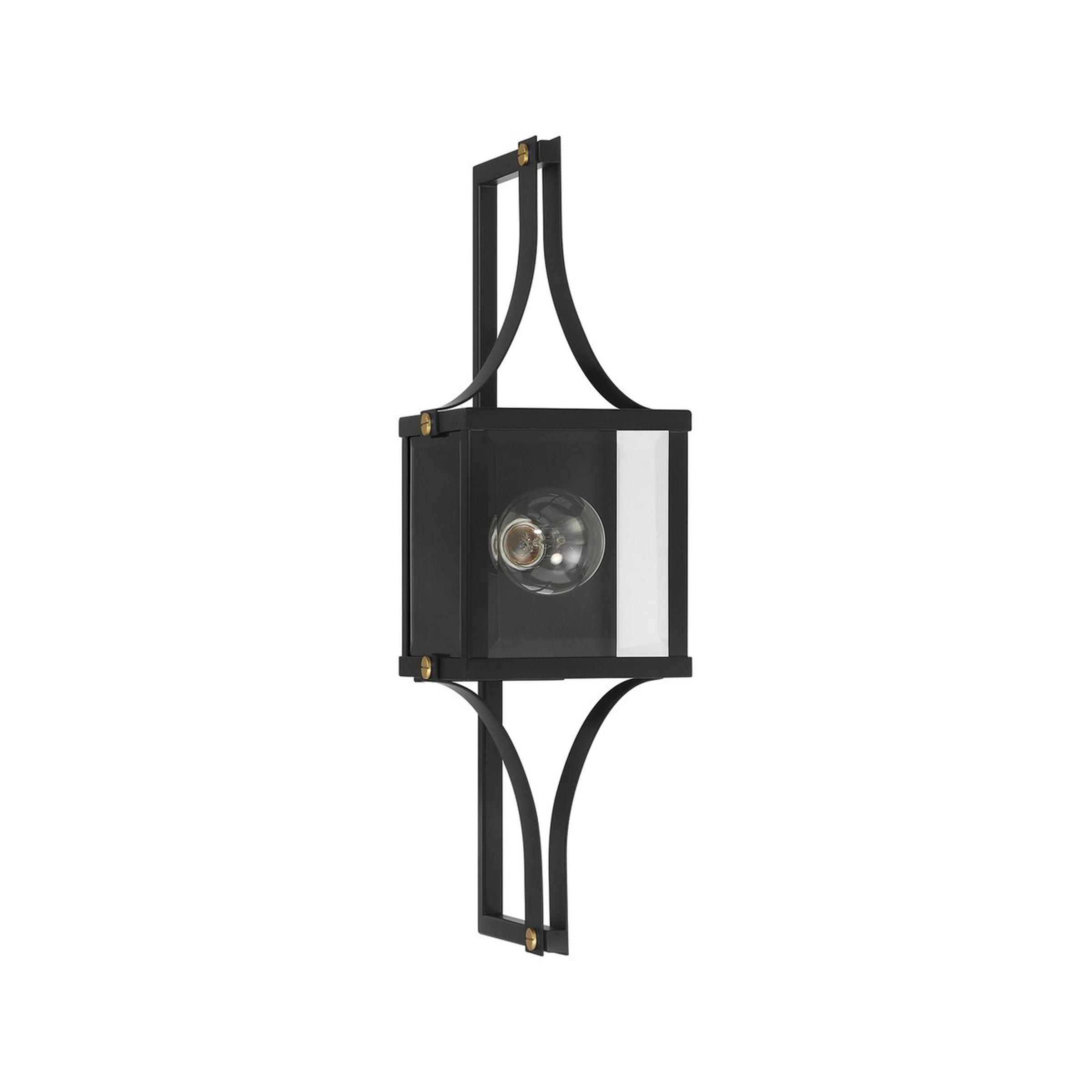 Elevate your outdoor lighting with the Calendula Sconce. This fixture features a prominent cube of beveled clear glass, elegantly framed by a bold structure with thoughtful detailing. This light's sweeping lines and dynamic shape are unlike anything else and elevate your space with a dramatically modern feel.