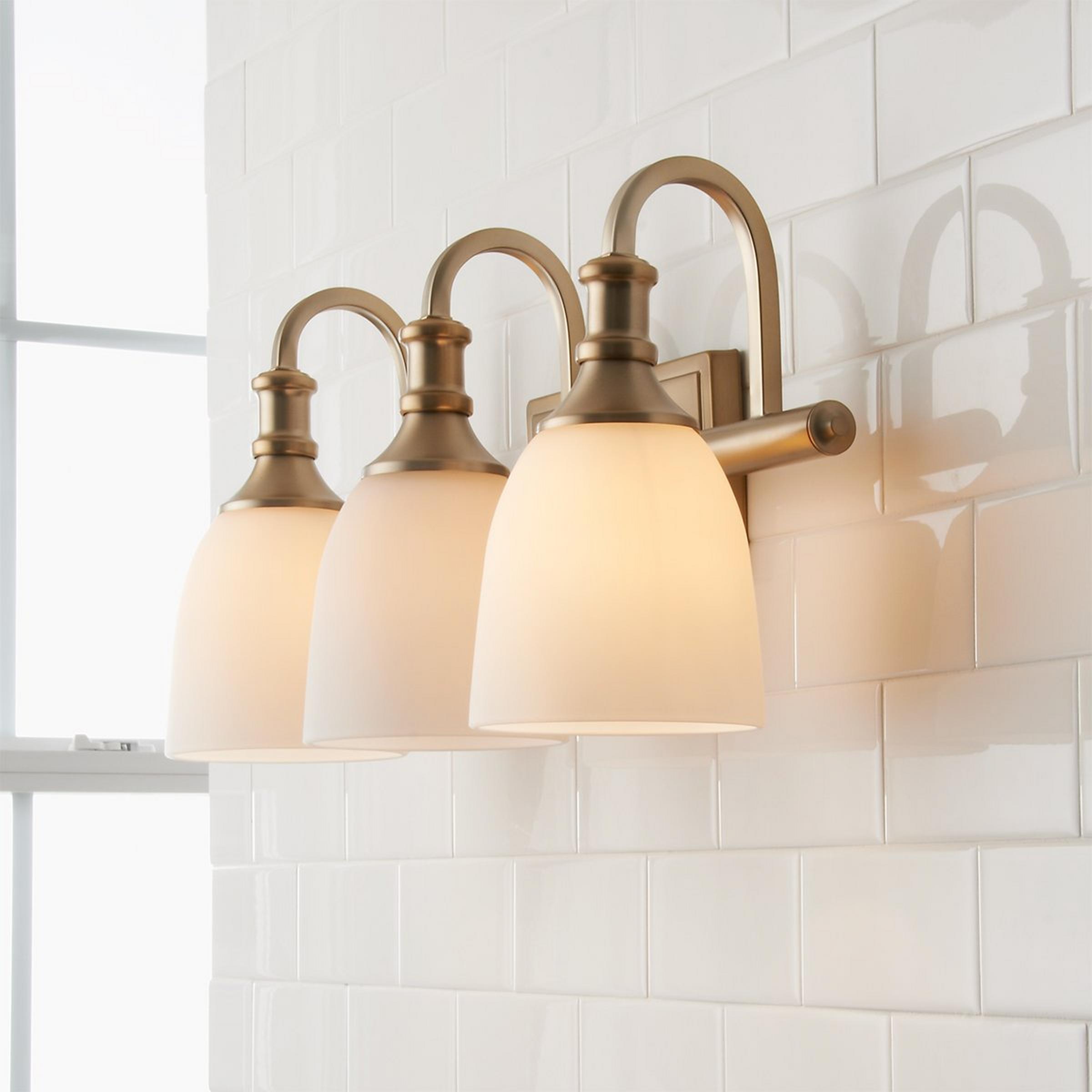 Moving forward to an updated and modern motif for your bathroom, this vanity light will help light up your space! The milky or clear seeded glass offers unclouded radiance, while the available finishes provide a variety of choices to fit your decor.